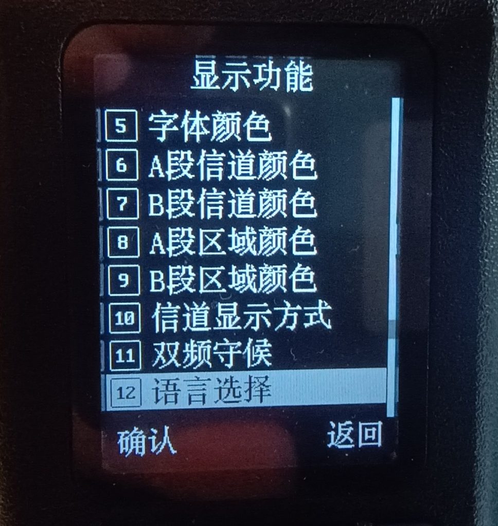 Ett “problem” som de flesta verkar råka på förr eller senare är att radion blir inställd på kinesiska. Någon fick den så vid leverans, någon annan stötte på det efter en firmwareuppdatering. I firmware 1.48 är knappsekvensen som följer för att ställa om till engelska: